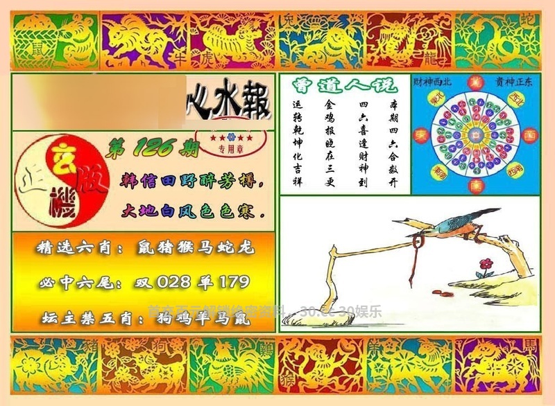 127期:心水报正版/港彩商报精简/东方心经/特码生肖诗/四字肖诗